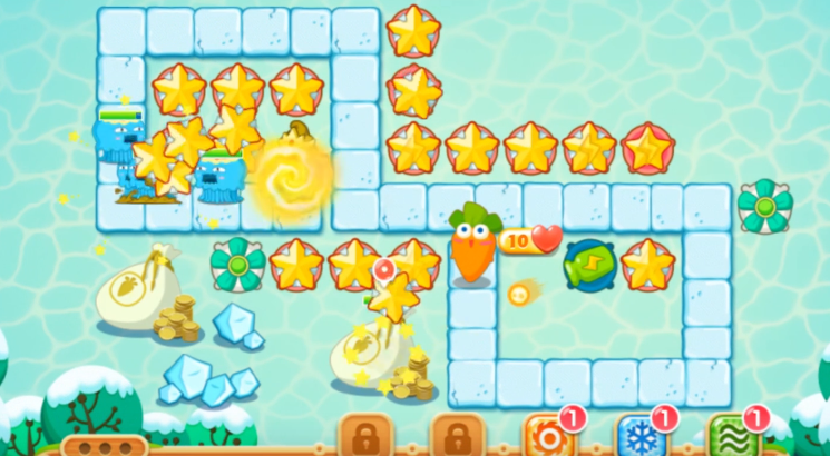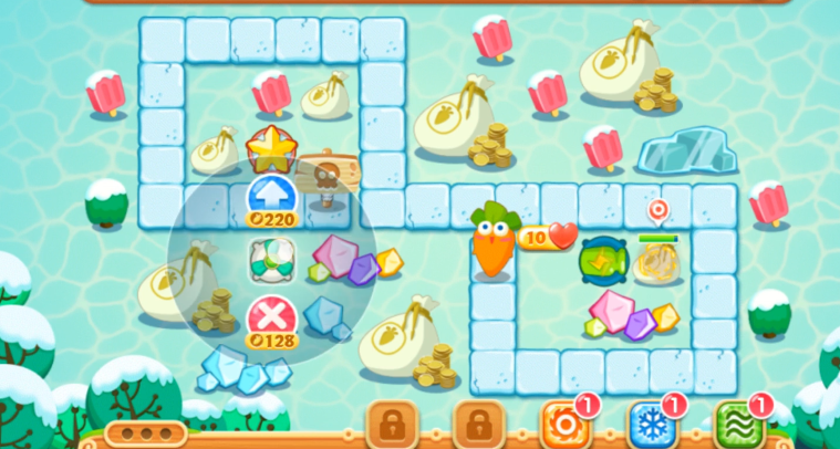 保卫萝卜2第93关是极地主题的怪物堡垒关卡,核心目标是摧毁地图上的敌方堡垒,同时必须完成三个额外任务才能成功解锁并完美通关,这些任务分别是成功消灭300个怪物、在60秒内找到隐藏在道具中的爆破炸弹以及在220秒内清除地图左侧的白色水晶。